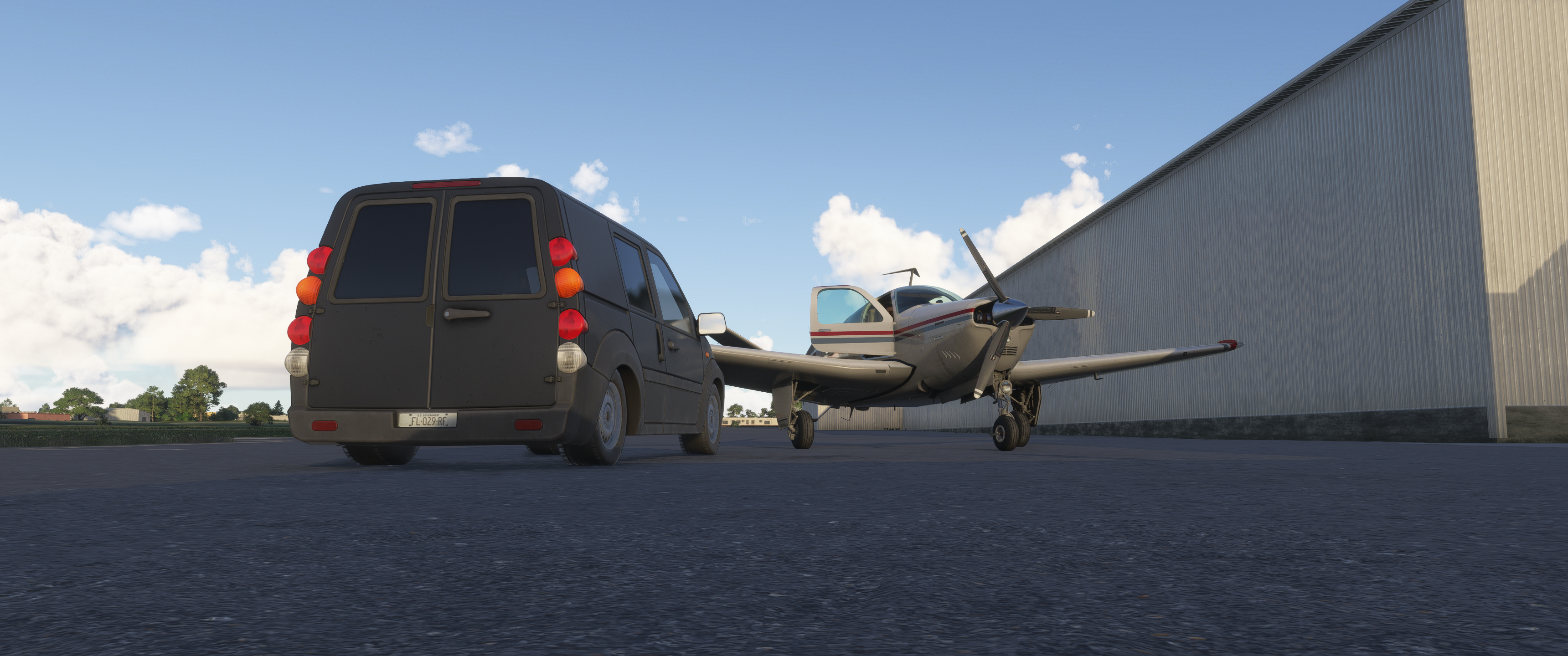 A black van parks next to the Bonanza upon arrival to France at Merignac