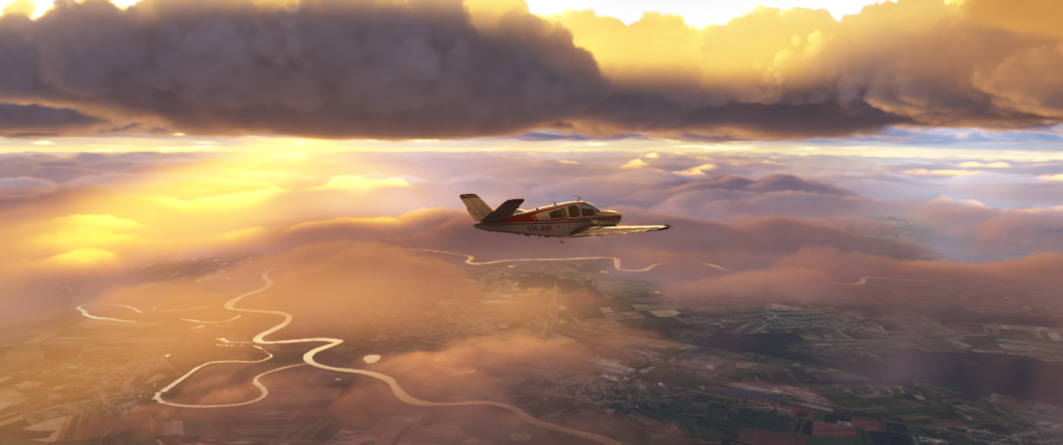Sunset descent into Prague, Czechia